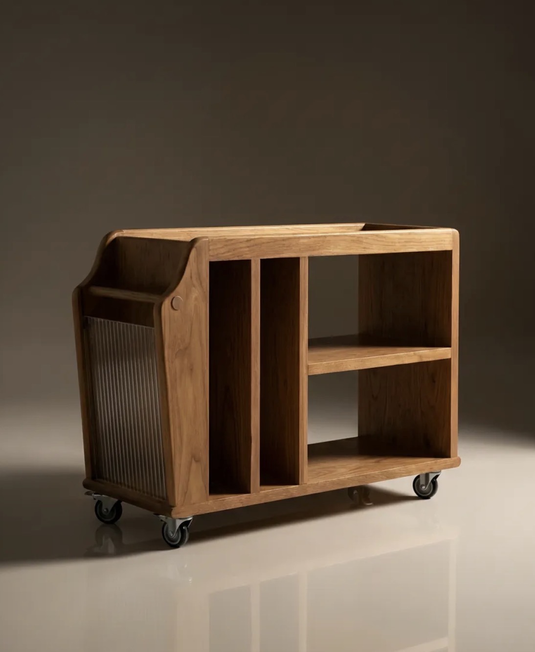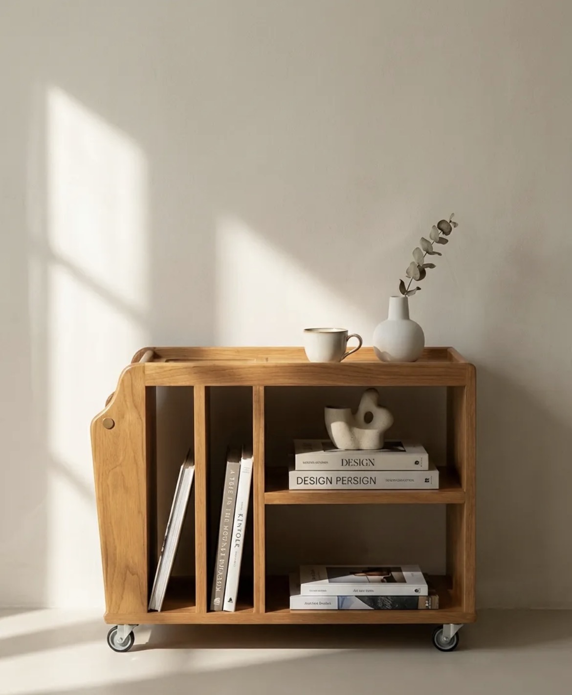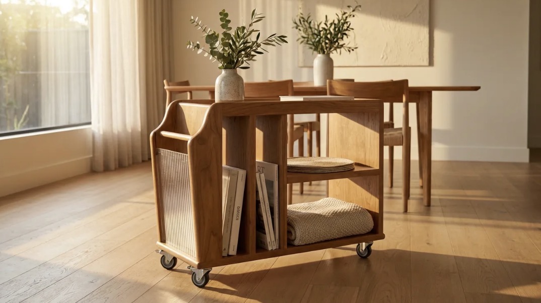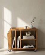 Şık ve kullanışlı ahşap depolama arabası, harketli tasarımıyla evinizin her yerinde kolayca kullanılabilir. Çoklu bölmeleri ve tekerlekleri sayesinde hem sehpalar arasında pratik bir geçiş sağlar, hem de saklama ihtiyaçlarınız karşılanır.