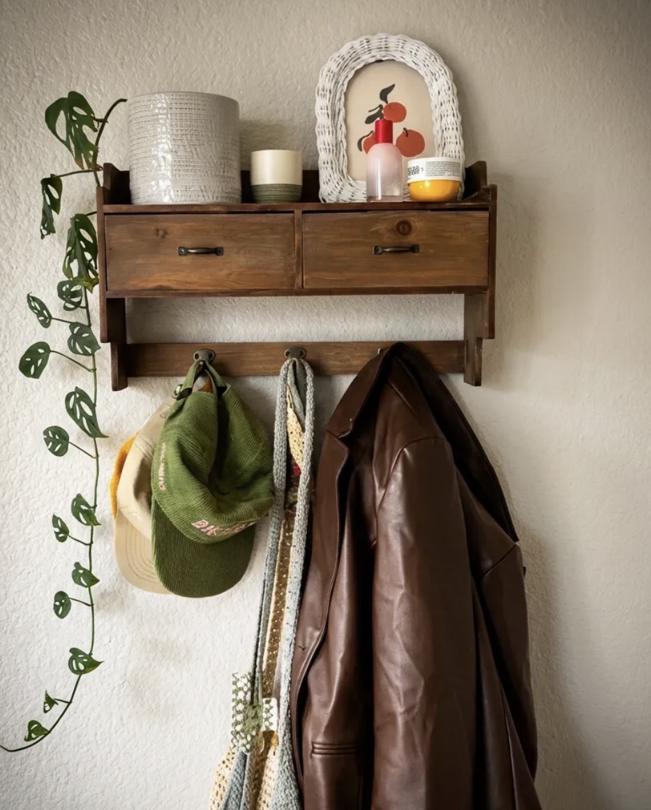 Bu ürün, rustik hem dekoratif hem de fonksiyonel bir askılıktır. Üst kısımdaki çekmeceleriyle küçük aksesuarlar düzenlemek için düzenlenebilir.